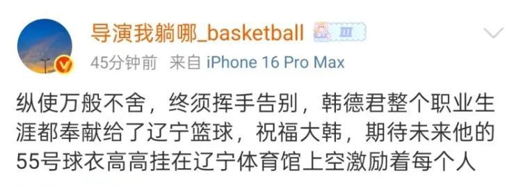 效力辽宁男篮18载,韩德君的职业生涯总共得到了8711分。在今年三月份和同曦男篮的比赛中,韩德君的历史得分超越了郭艾伦,成为了辽宁男篮的历史得分王。纵观韩德君整个职业生涯,他一直都非常低调,在场上兢兢业业任劳任怨,可以说是辽宁男篮的队魂。韩德君就此退役,很多辽宁球迷肯定是非常不舍的,不过他的年龄已经38岁,已经为辽宁男篮付出了一切,真的已经有些打不动了。对于韩德君,相信很多辽宁球迷都会为他送上真挚的祝福,希望他未来能够一切顺利!